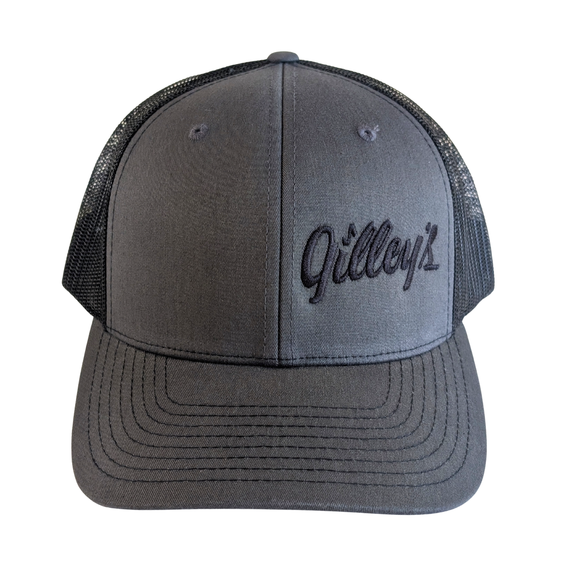 Embroidered Gilley's Logo hat. Gray with Black mesh. Hat is a Richardson 112 with snap back.